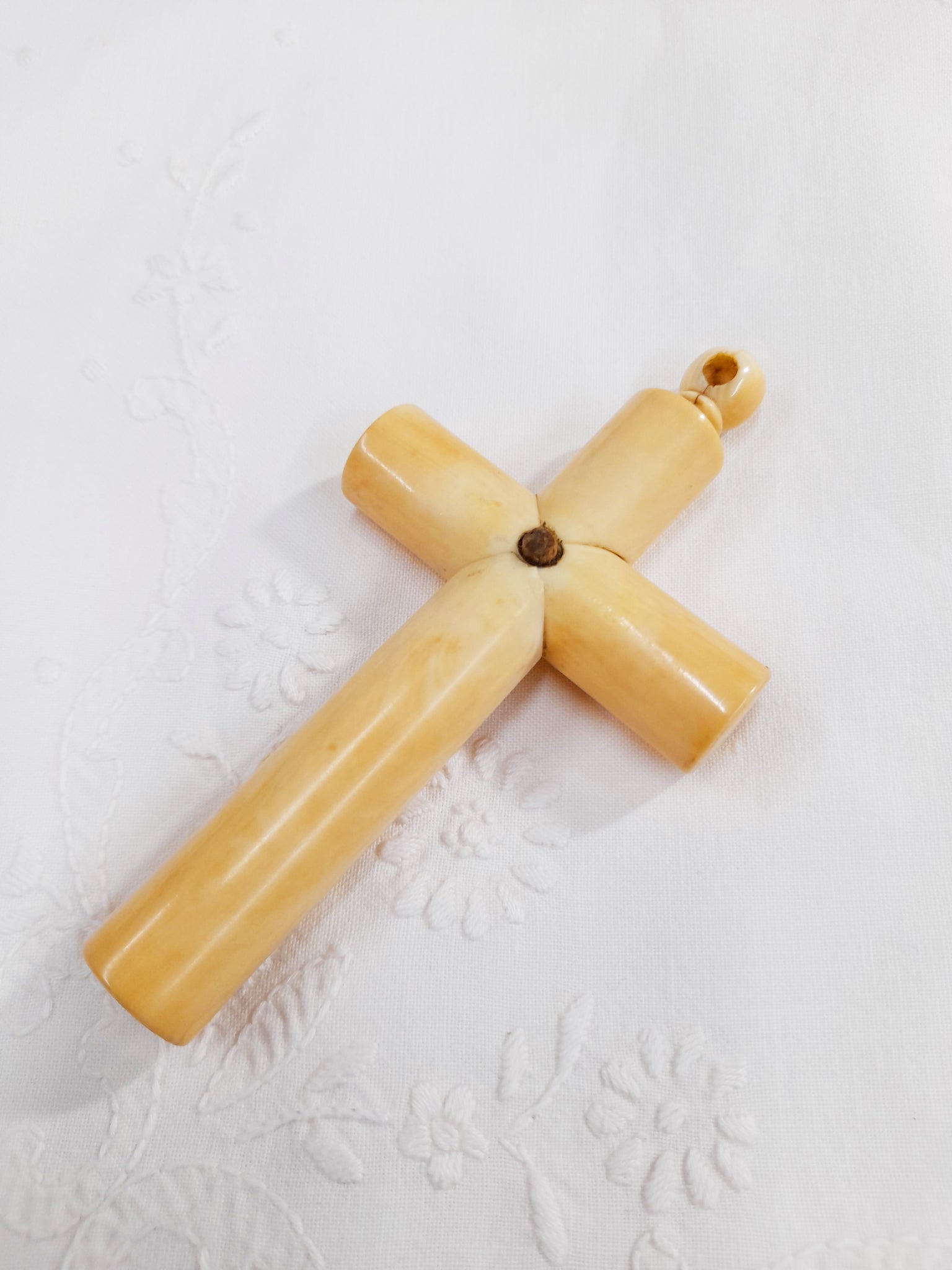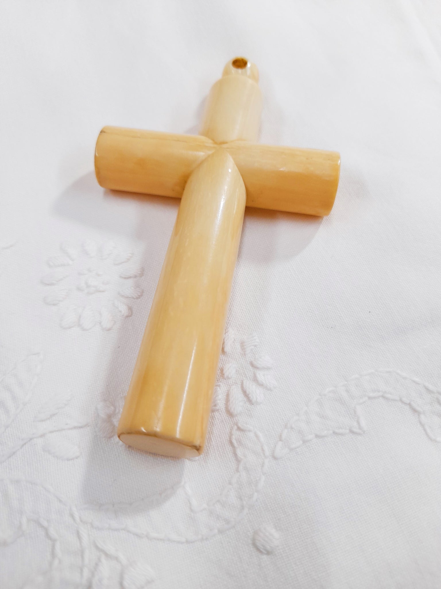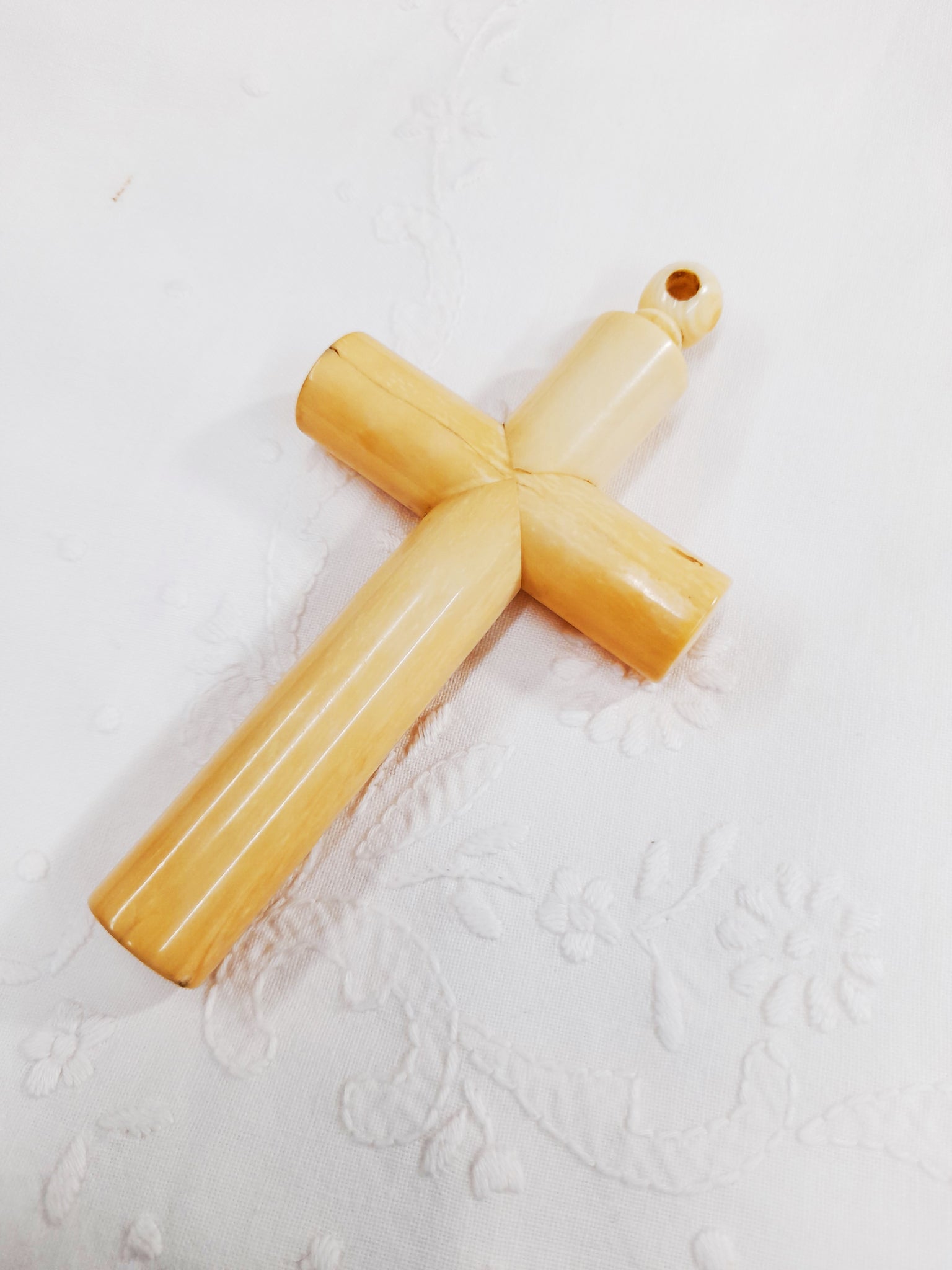 It is in very good condition, so, presumably, it was never actually played with by a baby. That is not surprising as these lovely crosses were made to hang above the cradle or crib to ward off evil and protect the baby in its cradle.